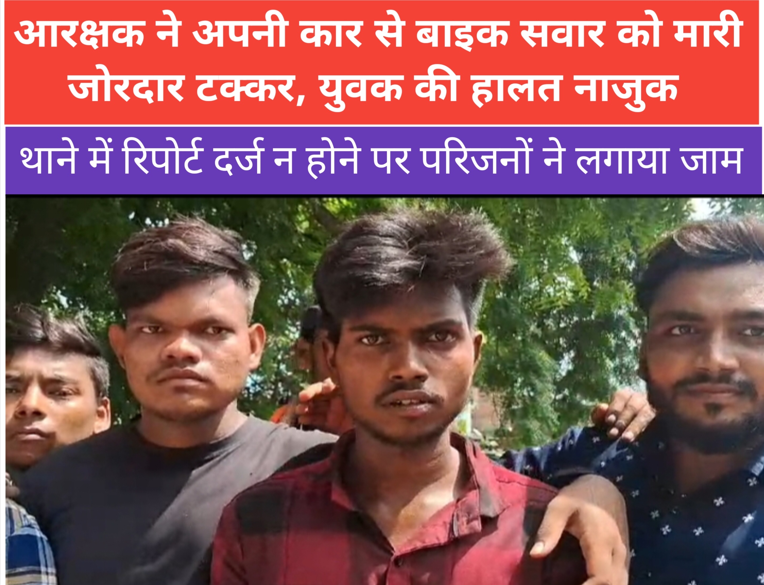 जानकारी के मुताबिक आपको बता दें कि ग्राम नारोल के निवासी राजेंद्र कुशवाह 29 अगस्त को शाम 3:00 बजे आपने किसी काम से मोटरसाइकिल से कहीं जा रहे थे जो देवरी मोड पर पहुंचे ही थे कि अचानक सामने से दवोह थाने में पदस्थ आरक्षक के द्वारा अपनी शिफ्ट गाड़ी को लापरवाही से चलते हुए राजेंद्र कुशवाहा की मोटरसाइकिल में जोरदार टक्कर मार दी… जिससे नारोल निवासी राजेंद्र कुशवाहा बुरी तरह से जख्मी हो गए।