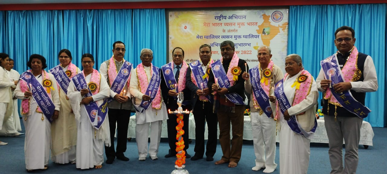 ग्वालियर: प्रजापिता ब्रह्माकुमारी ईश्वरीय विश्व विद्यालय की भगिनी संस्था राजयोग एजुकेशन एण्ड रिसर्च फाउंडेशन के मेडिकल विंग के द्वारा राष्ट्रीय अभियान मेरा भारत व्यसन मुक्त भारत के  के अंतर्गत “मेरा ग्वालियर व्यसन मुक्त ग्वालियर” अभियान का शुभारम्भ रविवार 04 दिसंबर 2022 के श्री शीतला सहाय सभागार में हुआ।