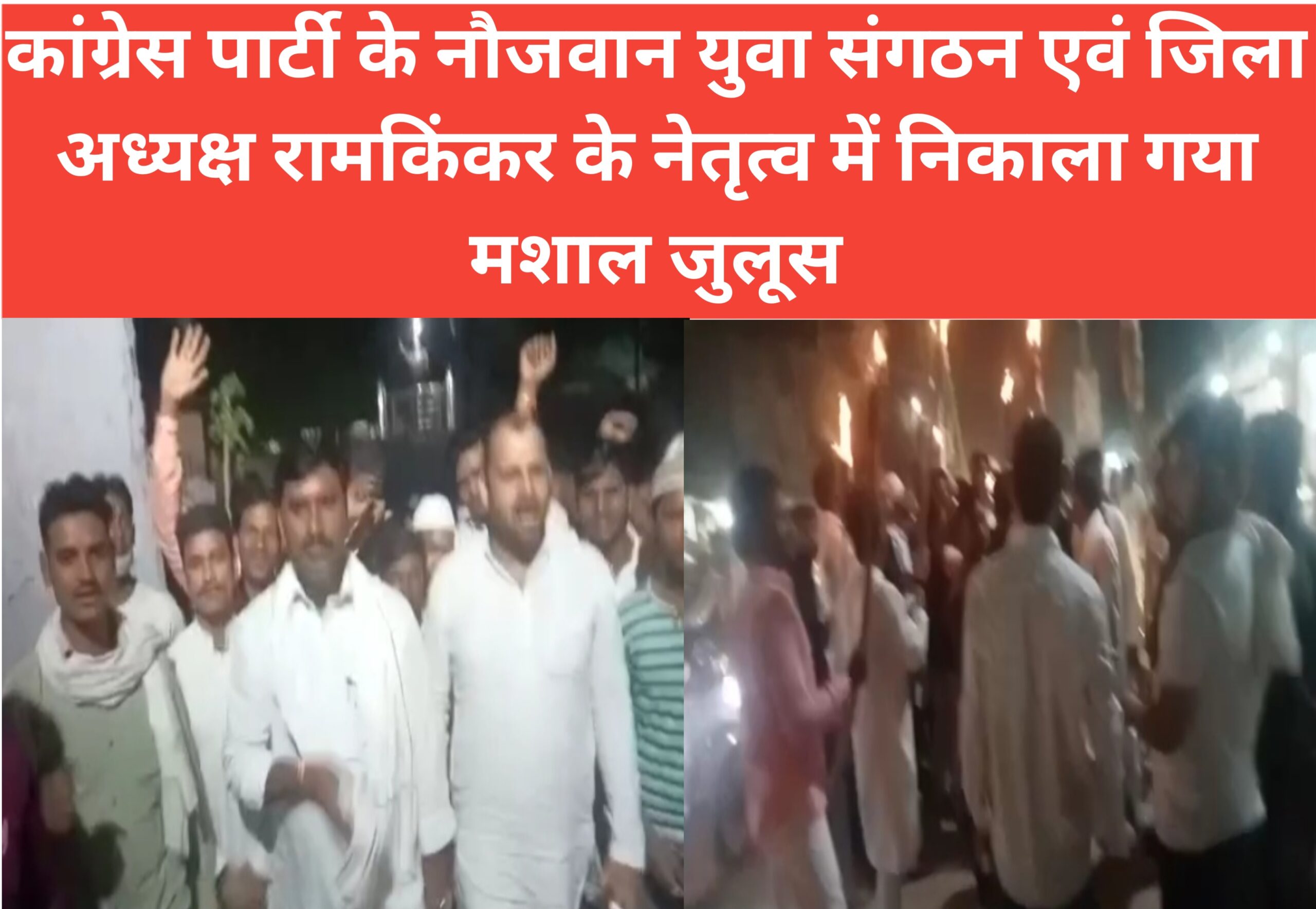 कांग्रेस पार्टी की नौजवान युवा संगठन एवं जिला अध्यक्ष रामकिंकर के नेतृत्व में निकाला गया मशाल जुलूस