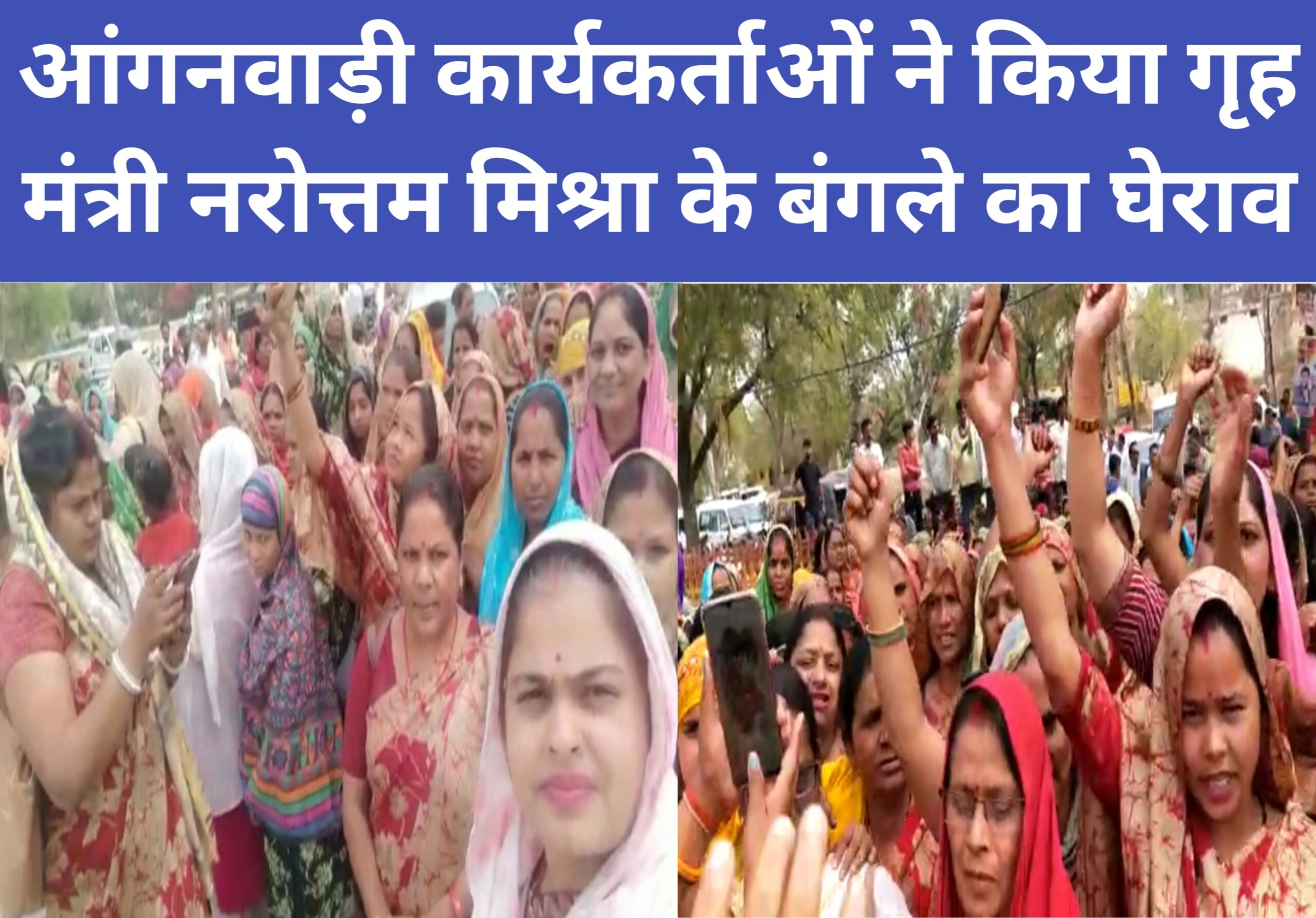 आंगनवाड़ी कार्यकर्ताओं ने किया गृह मंत्री नरोत्तम मिश्रा के बंगले का घेराव