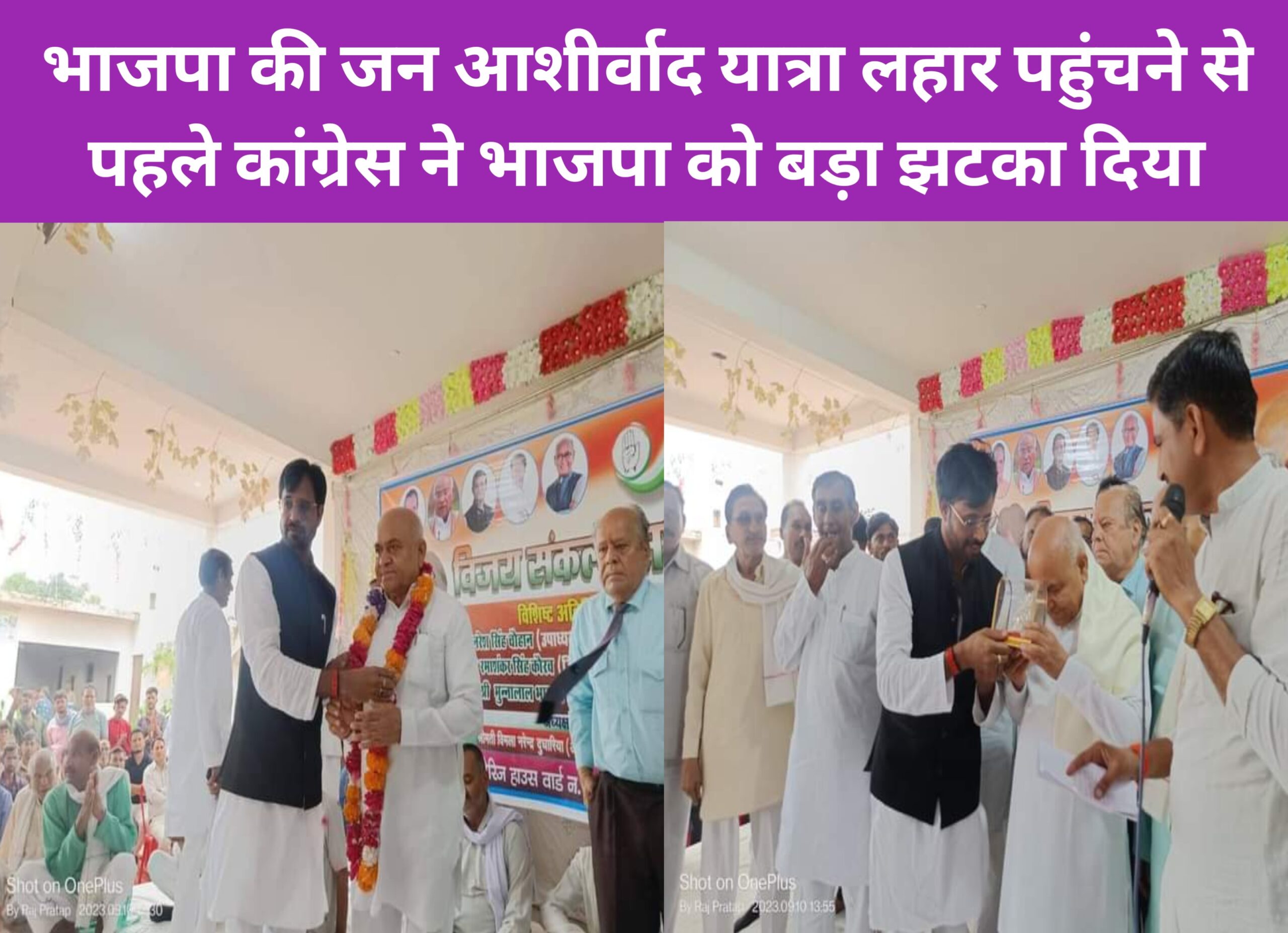 भाजपा की जन आशीर्वाद यात्रा लहार पहुंचने से पहले कांग्रेस ने भाजपा को बड़ा झटका दिया