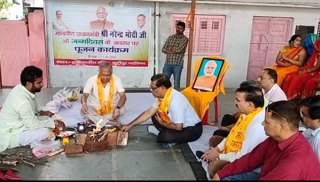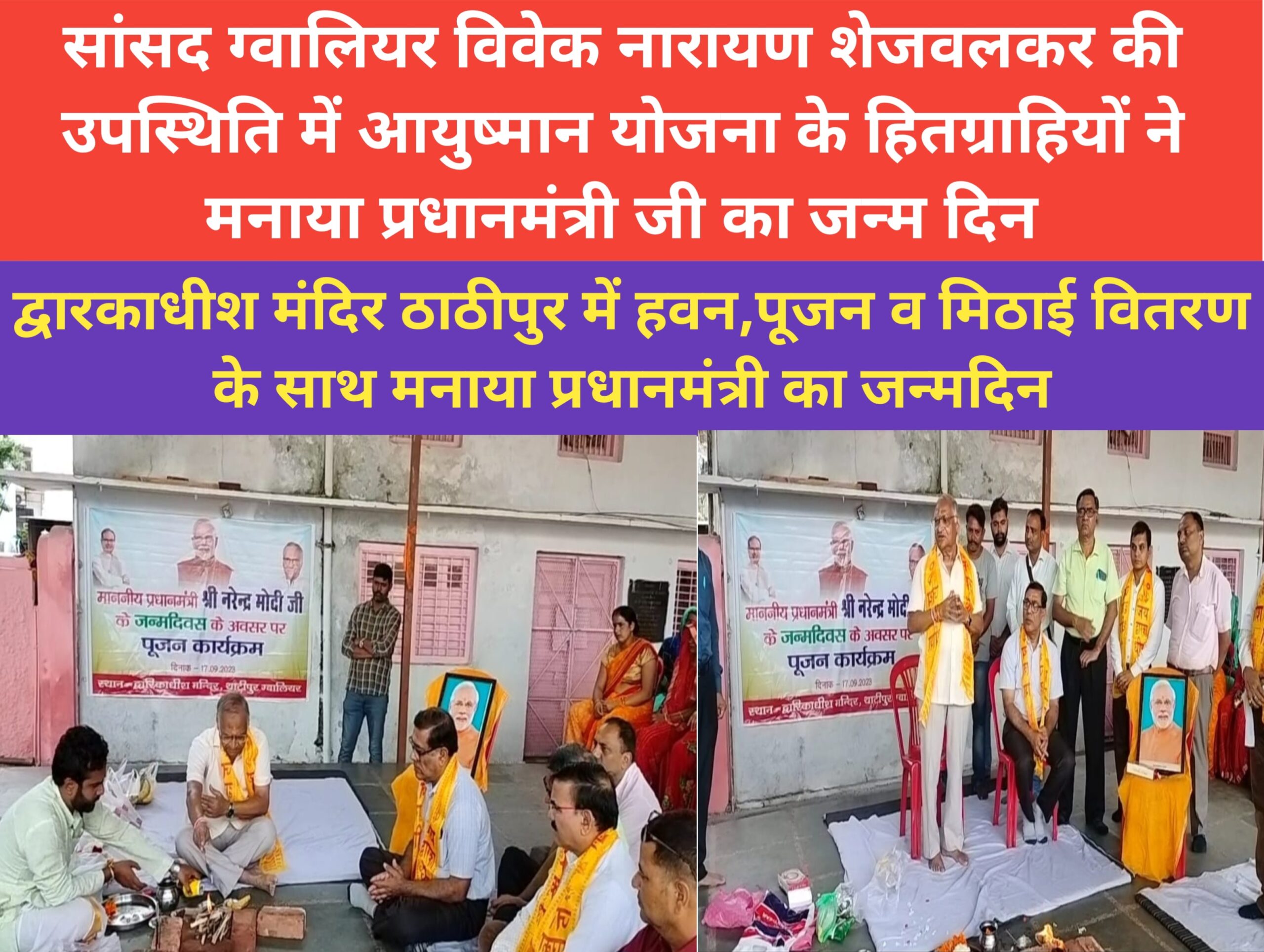द्वारकाधीश मंदिर ठाठीपुर में हवन,पूजन व मिठाई वितरण के साथ मनाया प्रधानमंत्री का जन्मदिन