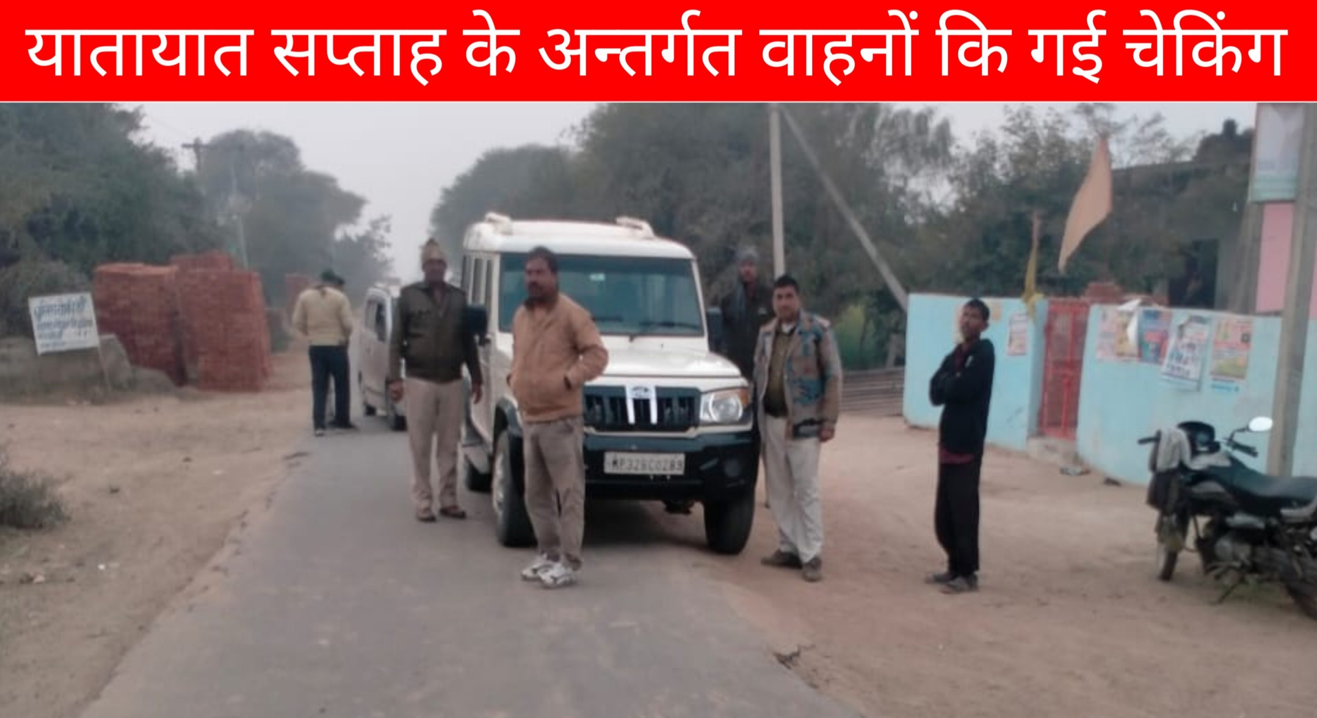 गोंधन पुलिस के द्वारा यातायात सप्ताह के तहत ग्राम उडीना भिटारी के बीच रोड पर चेकिंग कर नागरिकों को जागरूक किया गया । पुलिस अधीक्षक श्री अमन सिंह राठौड़ के निर्देशन में अतिरिक्त पुलिस अधीक्षक श्री कमल मौर्य एवं एसडीओपी भांडेर श्री कर्णिक श्रीवास्तव के कुशल मार्गदर्शन में पुलिस मुख्यालय द्वारा चलाए जा रहे यातायात सप्ताह के पालन में गोदन थाना पुलिस के द्वारा ग्राम उडीना भिटारी के बीच वाहन चेकिंग की गई एवं शराब पीकर वाहन न चलाने के संबंध मेंएवं ऑटो के संबंध में मोबाइल ऐप के बारे में एवं सीट बेल्ट लगाकर चलने तथा दुपहिया वाहनों पर हेलमेट लगाकर चलाने के संबंध में लोगों को समझाइश देकर जागरूक किया गया उक्त कार्रवाई में थाना प्रभारी सोबरन सिंह तोमर, एएसआई अरविंद सिंह भदोरिया चौकी प्रभारी उड़ीना आरक्षक गुलशन साहू ,सैनिक भगवान सिंह सैनिक प्रहलाद सिंह , की महत्वपूर्ण भूमिका रही