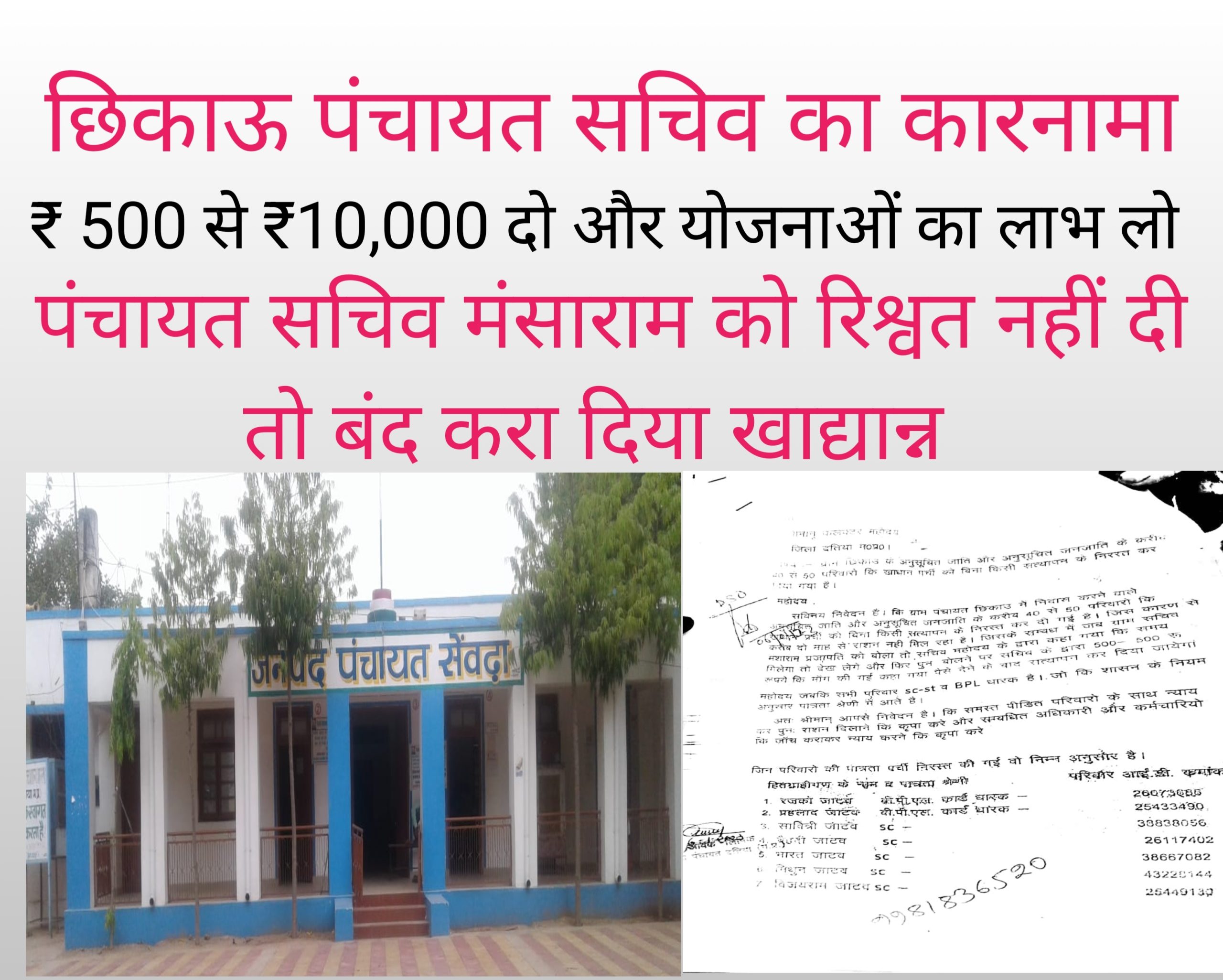 छिकाऊ पंचायत सचिव का कारनामा,₹ 500 से ₹10,000 दो और योजनाओं का लाभ लो