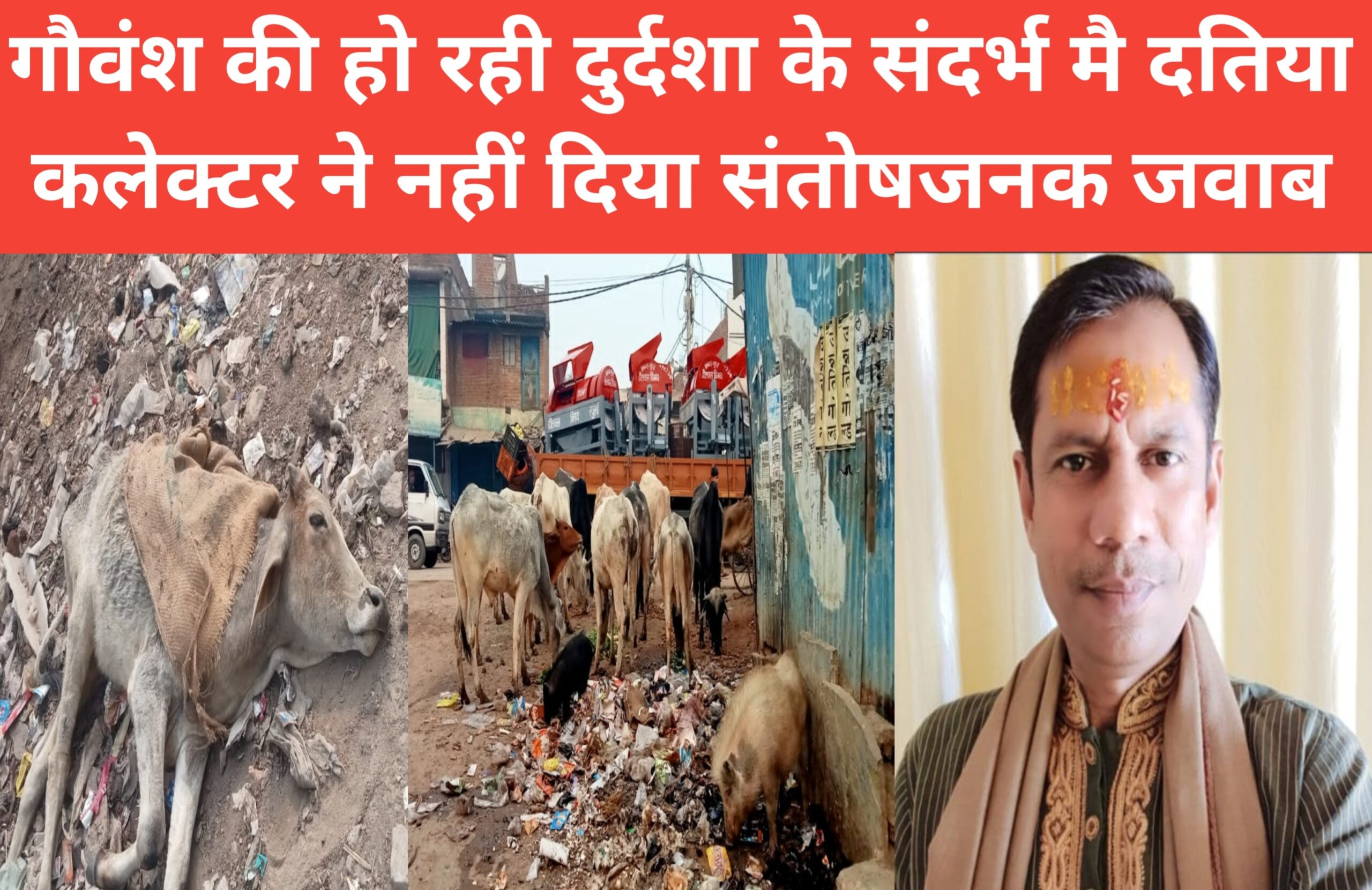 गौवंश की हो रही दुर्दशा के संदर्भ मै दतिया कलेक्टर ने नहीं दिया संतोषजनक जवाब