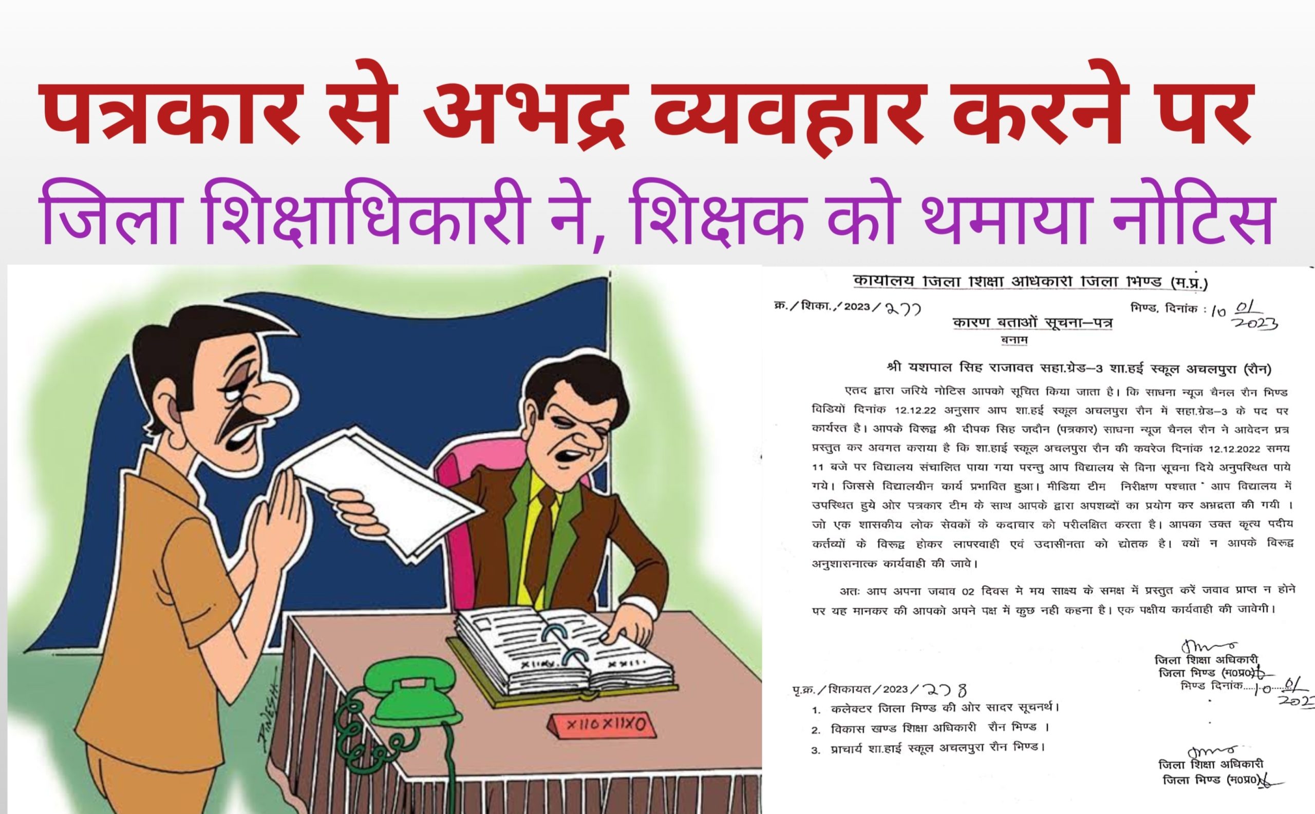 पत्रकार से अभद्र व्यवहार करने पर जिला शिक्षाधिकारी ने, शिक्षक को थमाया नोटिस