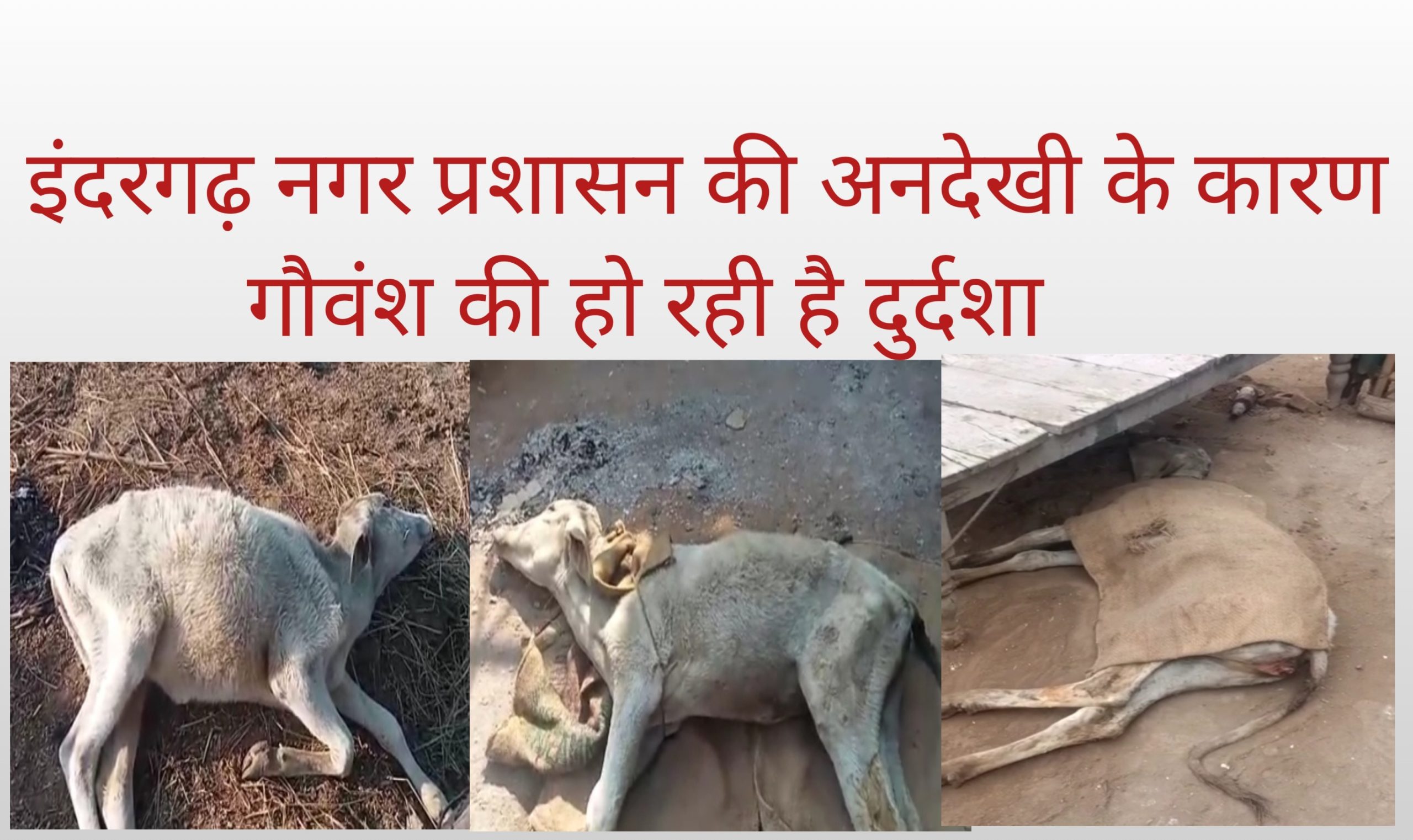 इंदरगढ़ नगर प्रशासन की अनदेखी की के कारण गौवंश की हो रही है दुर्दशा