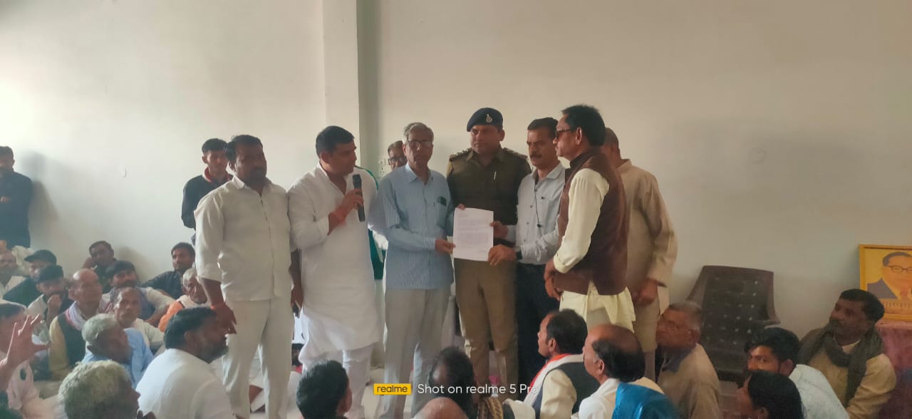 अधिकारियों ने दिया 5 दिन में कार्यवाही का आश्वासन बॉक्स कांग्रेस कार्यालय पर आयोजित बैठक में विनोद दुबे मामले में अनुविभागीय अधिकारी प्रदीप सिंह तोमर एसडीओपी नितिन बघेल ने कार्यालय पहुंचकर पूर्व विधायक मिश्र एवं कांग्रेस प्रत्याशी पंकज उपाध्याय सहित या उपस्थित कांग्रेस कार्यकर्ताओं को आश्वासन दिया कि पांच दिवस में मामले में आवश्यक कार्यवाही की जाएगी हालांकि इससे पूर्व एक्स एमएलए महेश दत्त मिश्र के नेतृत्व में शांतिपूर्वक सत्याग्रह आंदोलन का निर्णय सैकड़ो कार्यकर्ताओं की दबाव में लिया जा चुका था लेकिन कार्यालय पर अधिकारियों के पहुंचकर आश्वासन से सत्याग्रह आंदोलन को 5 दिन के लिए स्थगित कर दिया