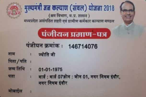 1-संबल योजना के अंतर्गत पंजीकृत पंजीयन कार्ड