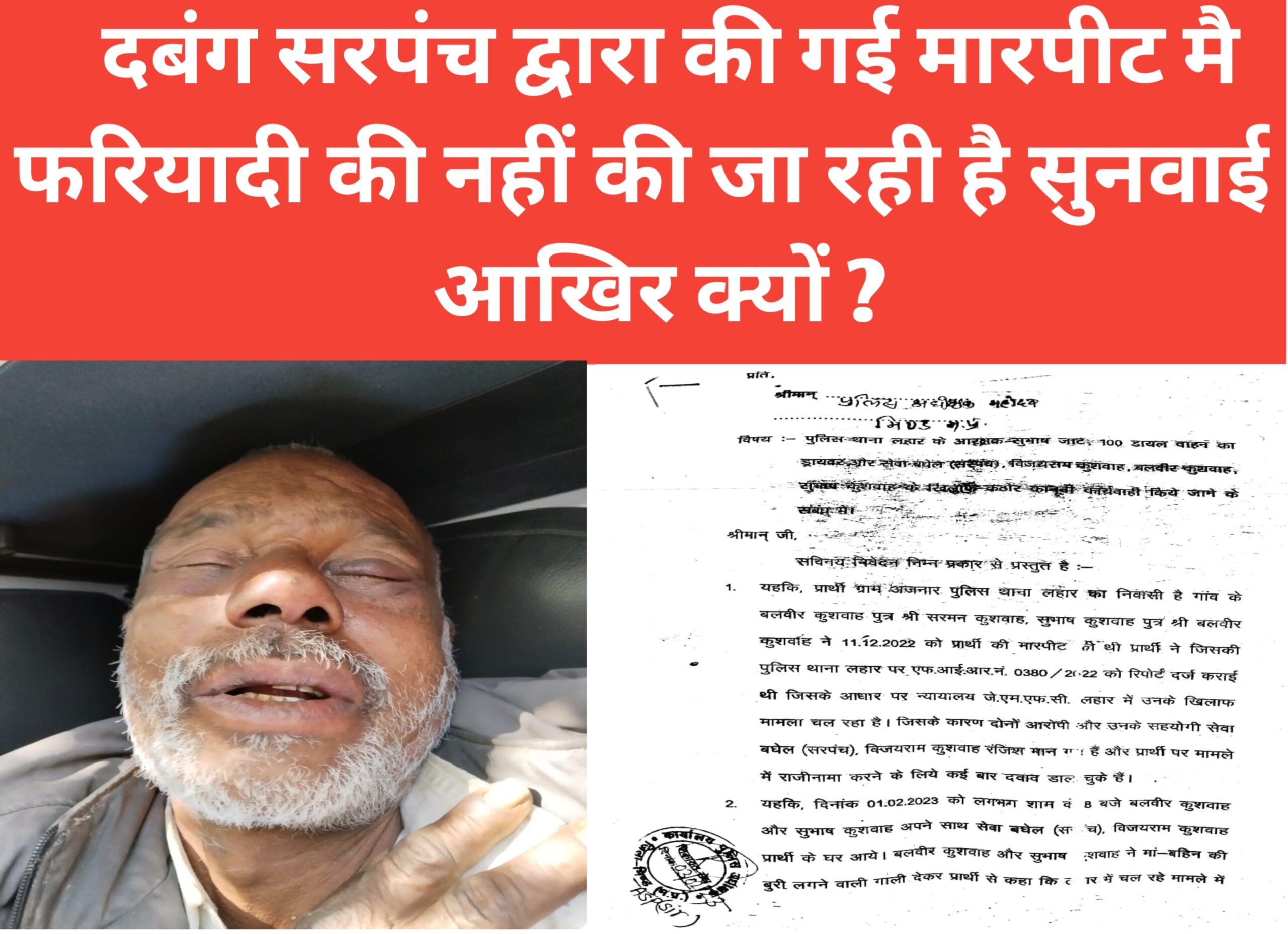 दबंग सरपंच द्वारा की गई मारपीट मै, फरियादी की नहीं की जा रही है सुनवाई, आखिर क्यों ?