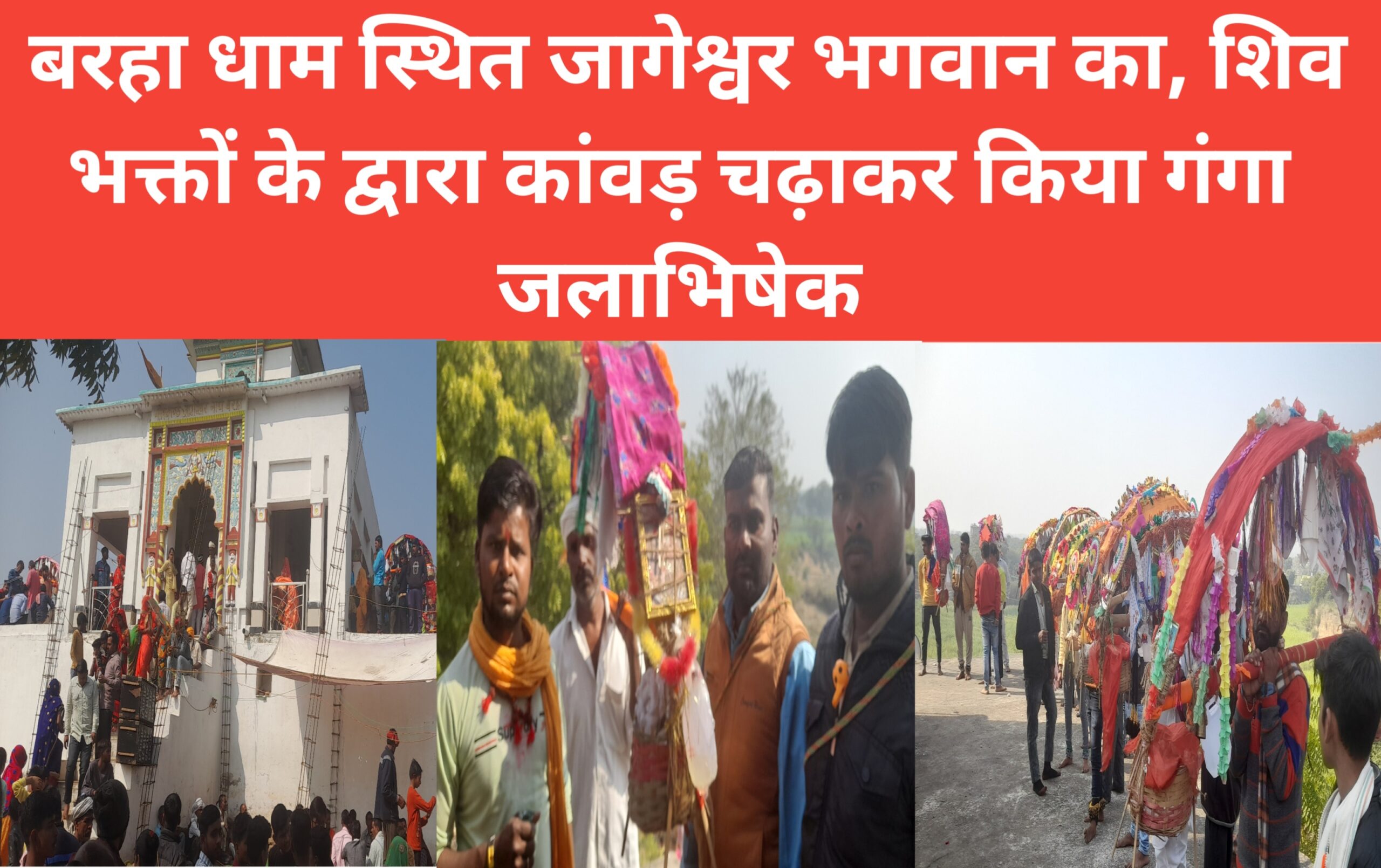 बरहा धाम स्थित जागेश्वर भगवान का शिव भक्तों के द्वारा कांवड़ चढ़ाकर किया गंगा जलाभिषेक