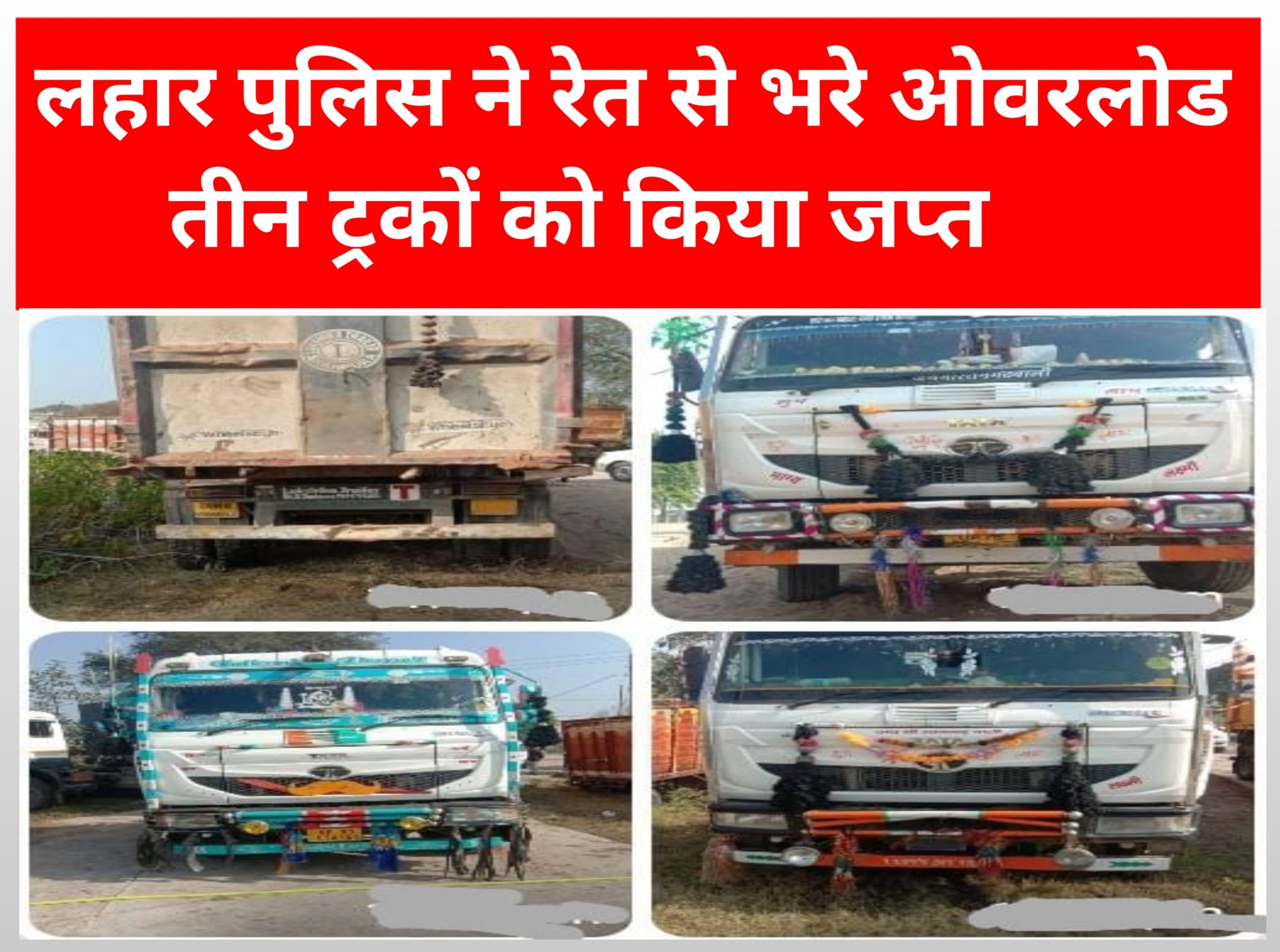 लहार पुलिस ने रेत से भरे ओवरलोड तीन ट्रकों को किया जप्त