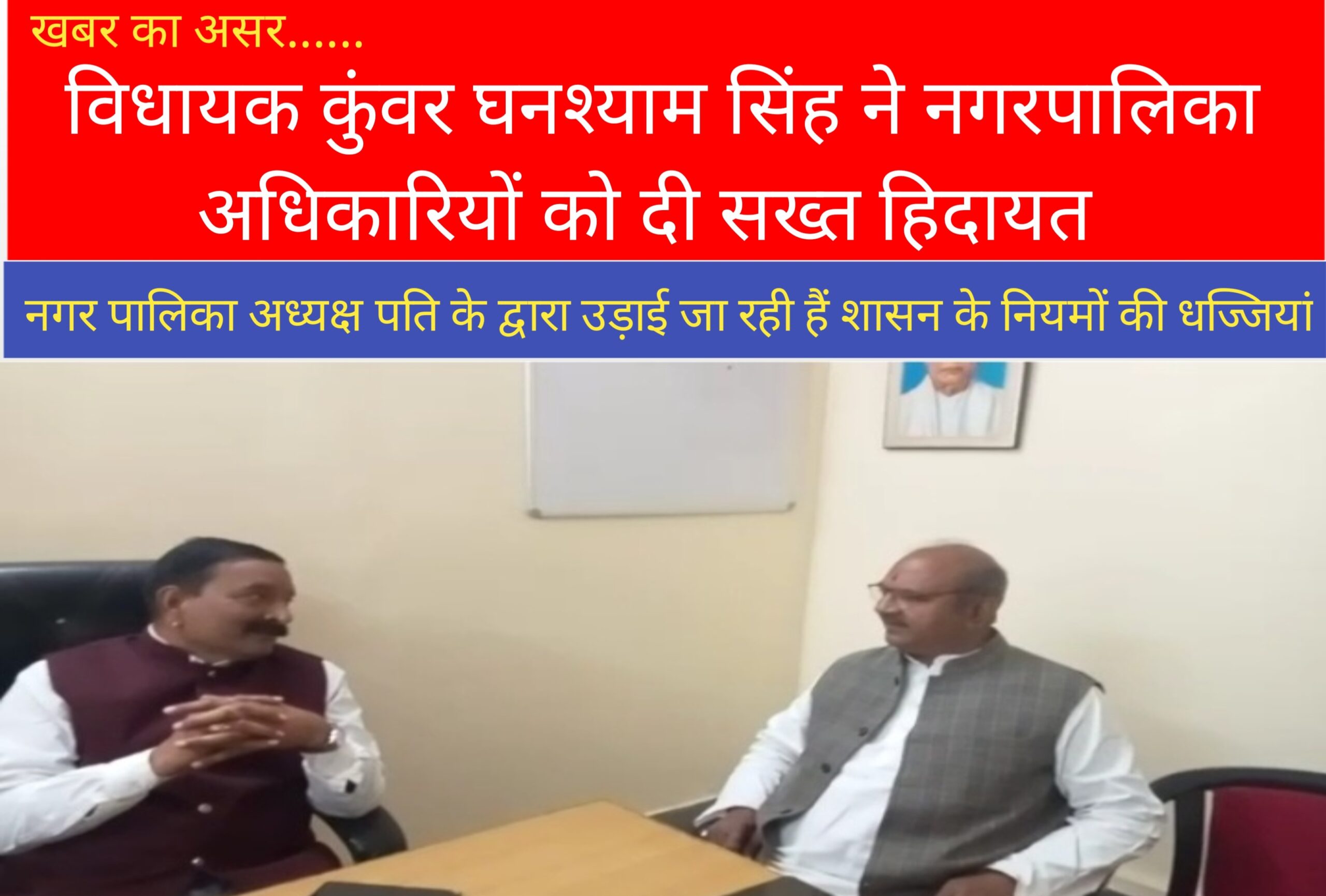 विधायक कुंवर घनश्याम सिंह ने नगरपालिका अधिकारियों को दी सख्त हिदायत