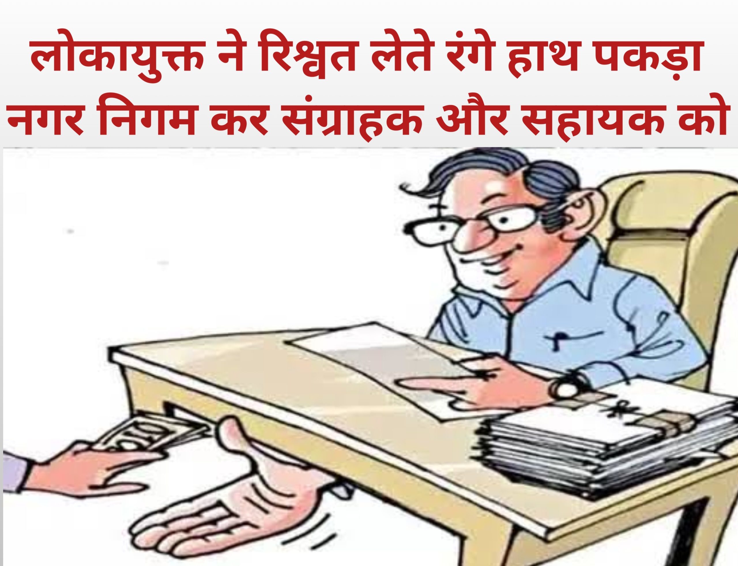 लोकायुक्त ने रिश्वत लेते रंगे हाथ पकड़ा नगर निगम कर संग्राहक और सहायक को