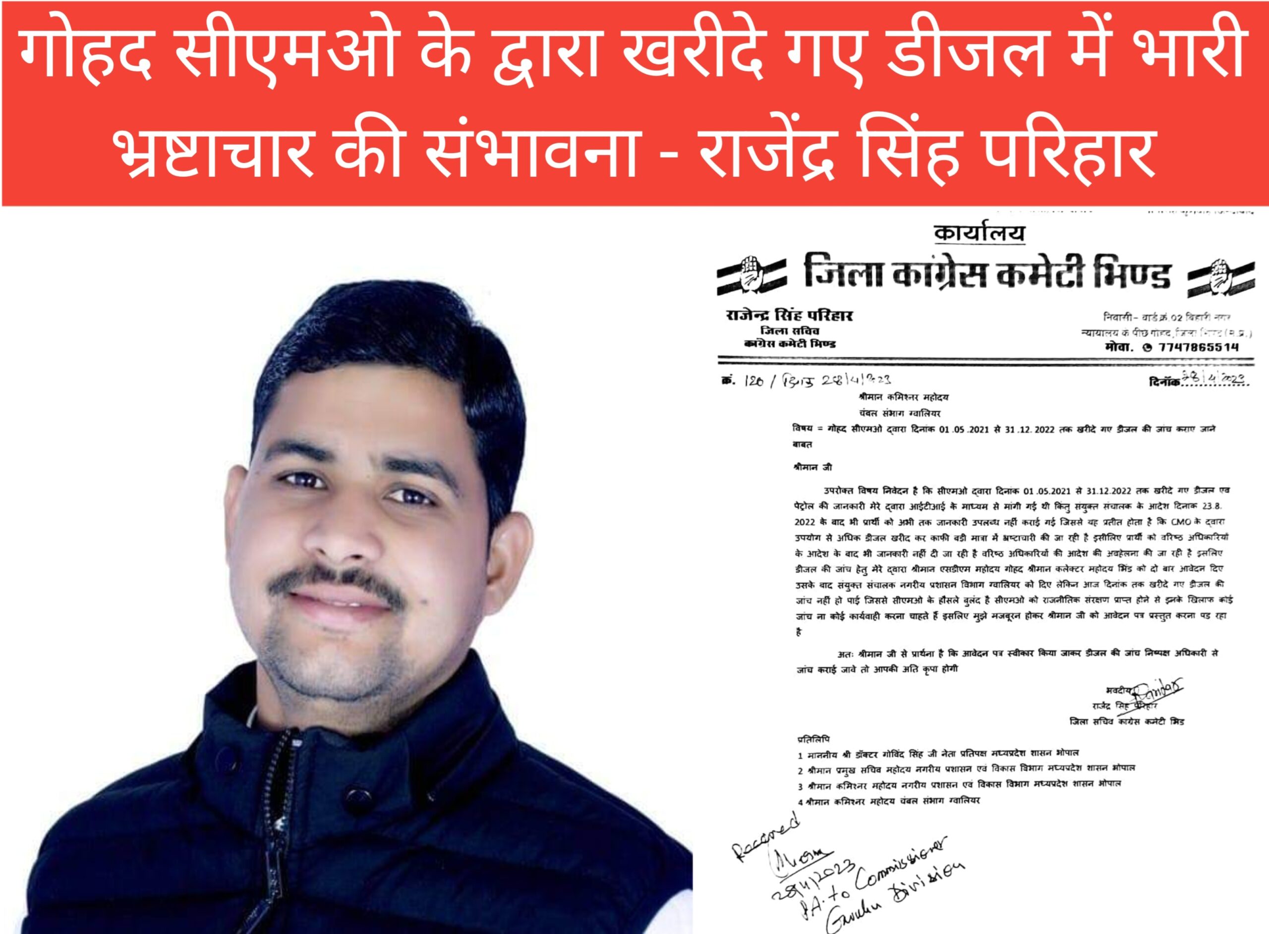 गोहद सीएमओ के द्वारा खरीदे गए डीजल में भारी भ्रष्टाचार की संभावना – राजेंद्र सिंह परिहार