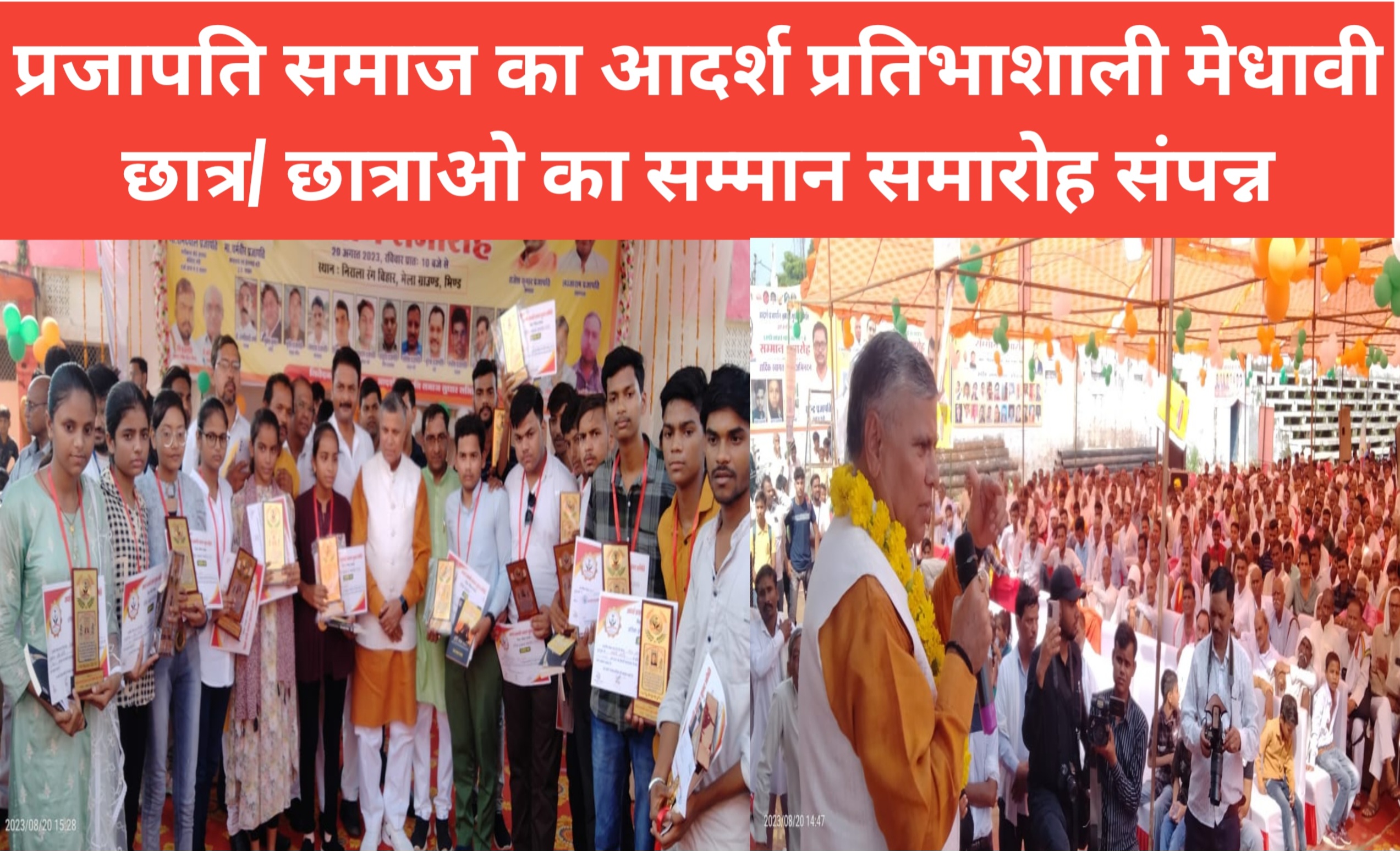 प्रजापति समाज का आदर्श प्रतिभाशाली मेधावी छात्र/ छात्राओ का सम्मान समारोह संपन्न