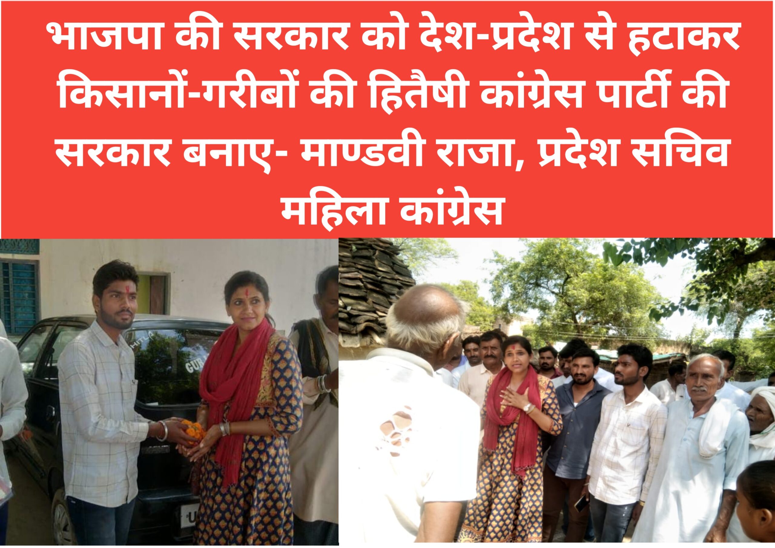 भाजपा की सरकार को देश-प्रदेश से हटाकर किसानों-गरीबों की हितैषी कांग्रेस पार्टी की सरकार बनाए- माण्डवी राजा, प्रदेश सचिव महिला कांग्रेस