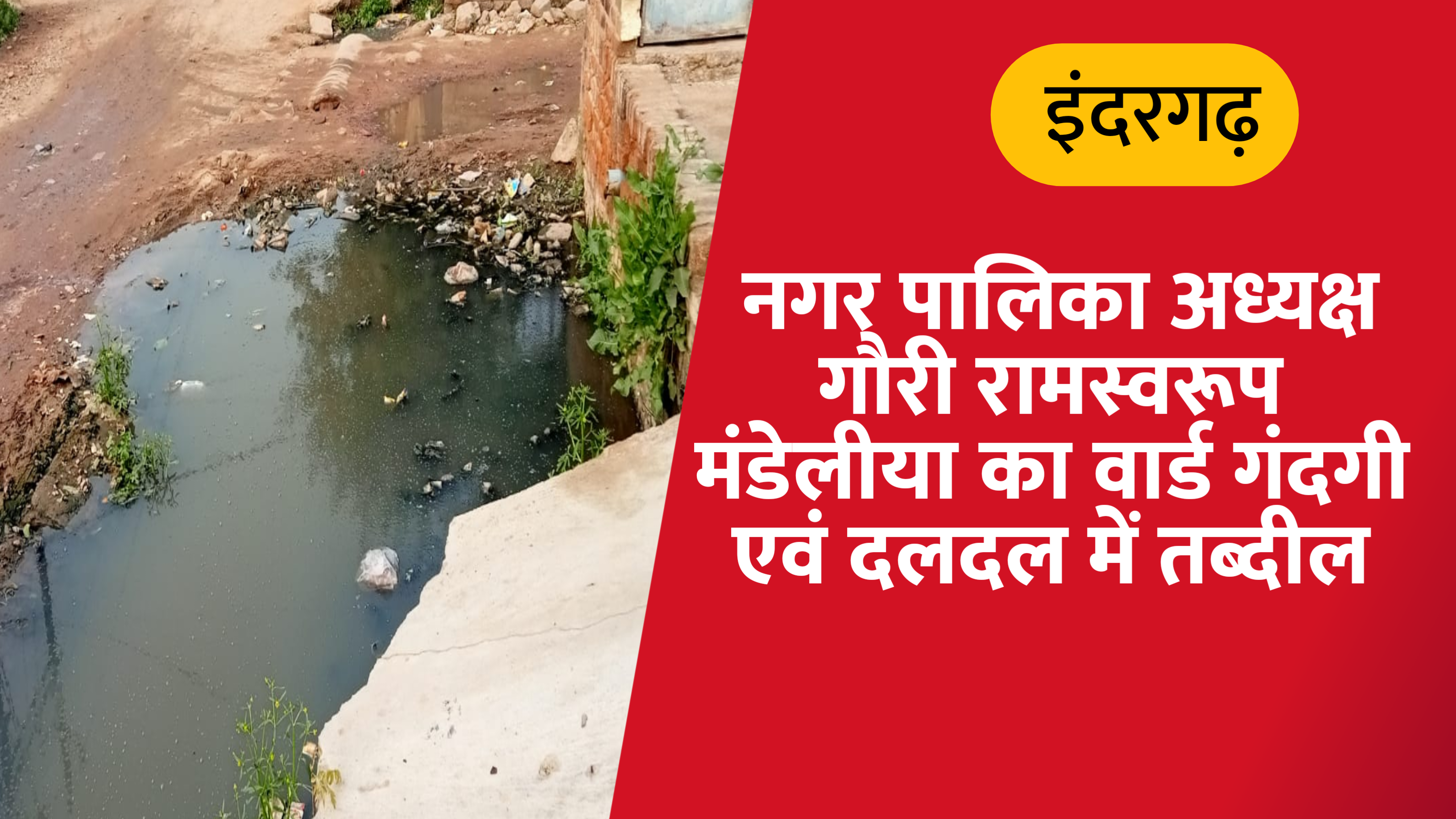इंदरगढ़ नगर पालिका अध्यक्ष गौरी रामस्वरूप मंडलीय का वार्ड गंदगी एवं दलदल में तब्दील