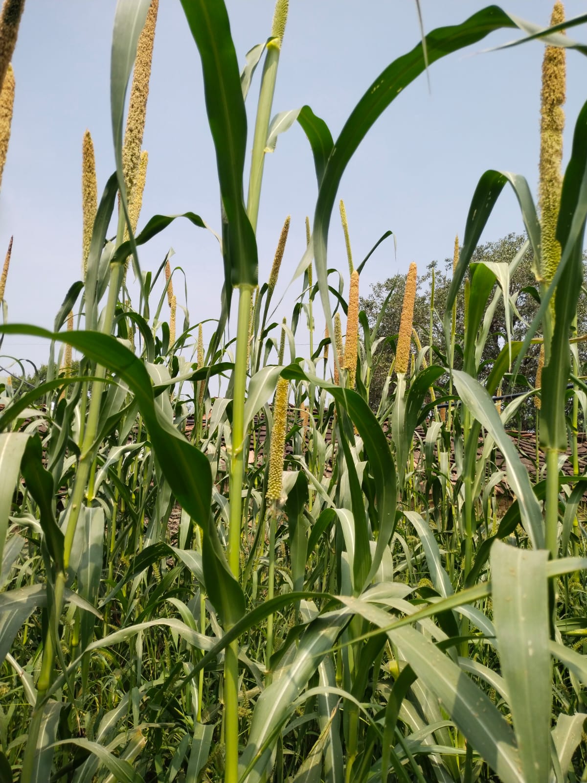 वह सभी बीज देसी होते हैं इससे बहुत बड़ा फायदा किसानों को यह भी होगा कि एक बार बीज वो के अपना बीज भी तैयार कर सकते हैं तथा कई सालों तक इन सभी बीजों से अच्छी पैदावार कर सकते हैं कोमल ने जो गेहूं किया था वह सारा गेहूं बीज के रूप में उन्होंने किसानों को बेच दिया है से जिससे कोमल सिंह की आमदनी कई गुना हो गई जबकि हर किसान ऐसा कर सकता है और अपनी आमदनी को कई गुना बढ़ा सकता है अभी कोमल ने जो बाजरे की फसल अपने खेत में लगाई है जिसकी बाली की लंबाई 3 फीट से 4 फीट तक है और बहुत ही शानदार फसल खेत में खड़ी है जिस बजारे की फसल को लगाया है उस बाजरे का नाम सादा गोल्ड बाजरा है और किसान भाई जो अपने खेत में बाजरे की फसल लगाते हैं उसकी वाली की लंबाई 10 से 12 इंच ही होती है और पैदावार 4 से 5 क्विंटल प्रतिबीघा होती है